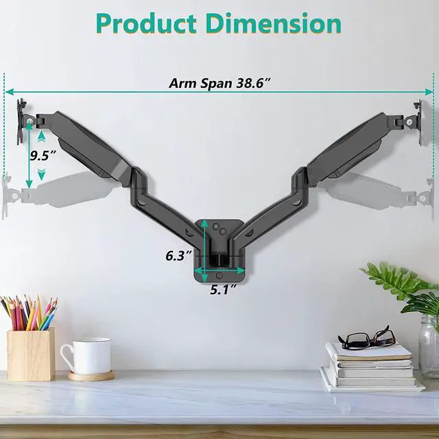 Wall Mount Monitor Arm - Double Benefits: Double efficiency and productivity by opening up desk space allowing a new range of adaptable positions for your displays.