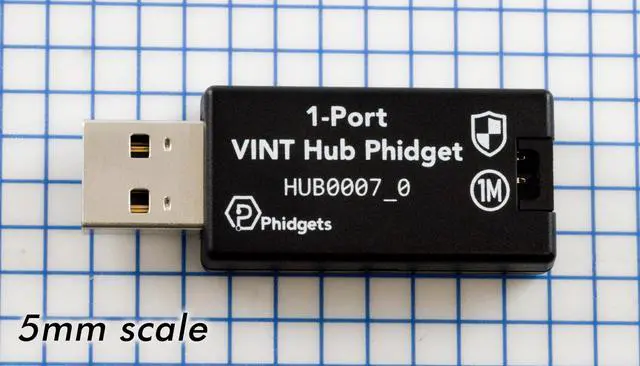The 1-Port VINT Hub is the simplest way to connect a VINT device to your computer. Phidgets are "Plug and Program" - When plugged in, they are automatically discovered by the Phidget drivers and made available to your program. You can configure the VINT port to operate in different modes that make it easy to interface with VINT devices, analog sensors, or logic-level circuits.