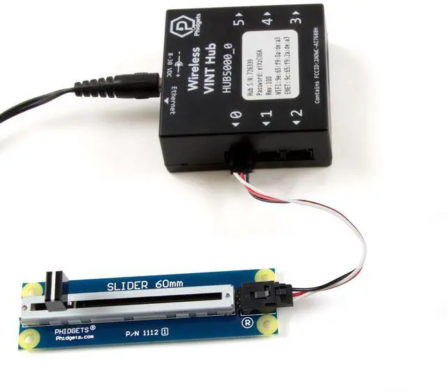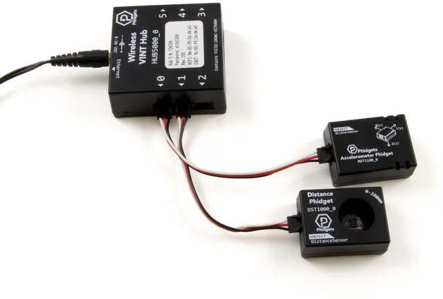 The Wireless VINT Hub is a simple way to use Phidgets in locations away from a computer by making them available on your local network via the Phidget Network Server. The HUB5000 requires a local WiFi signal and a power supply. You can also wire it directly into your modem or network switch using an ethernet cable. Phidgets are "Plug and Program" - When plugged in, they are automatically discovered by the Phidget drivers and made available to your program. You can configure each port to operate in different modes that make it easy to interface with VINT devices, analog sensors, or logic-level circuits.