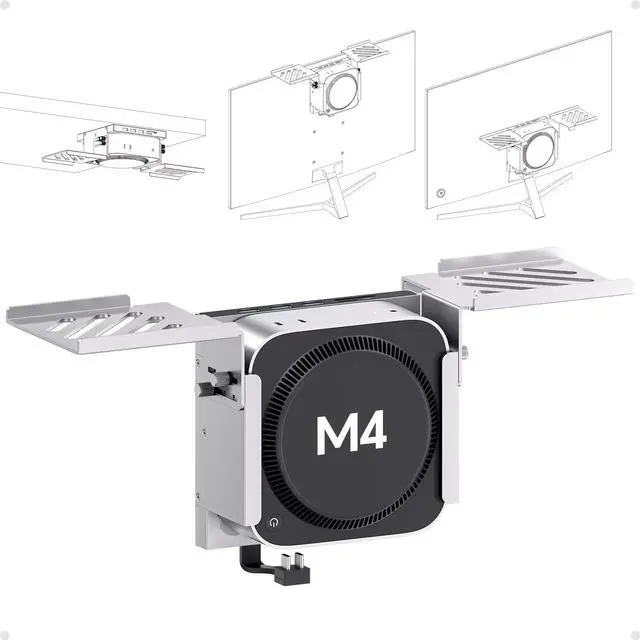 ^^ 4-in-1 Mounting System-Maximize Your SpaceThis mac mini dock takes clean your desk! It functions as a monitor screen shelf stand, a mac mini m4 dock bracket on desk partition, a behind-monitor mac mini vesa mount (only support 100mm 100mm), or an under desk. The integrated shelf offers smart storage for accessories like external drives, power adapters, card readers, streaming devices, or even a small planthelping you stay organized and efficient in any home or office setup.