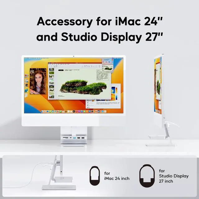 • Compatibility for iMac M1/M3/M4: iMac 2023 accessories are compatible with iMac M1/M3/M4 and Studio Display 27-inch. The hook-type design can be changed flexibly and is portable and lightweight. The iMac hub not only supports laptops which are with full-featured Type C ports, but also supports connecting hard disks, mice, and more USB devices to complete data transfe