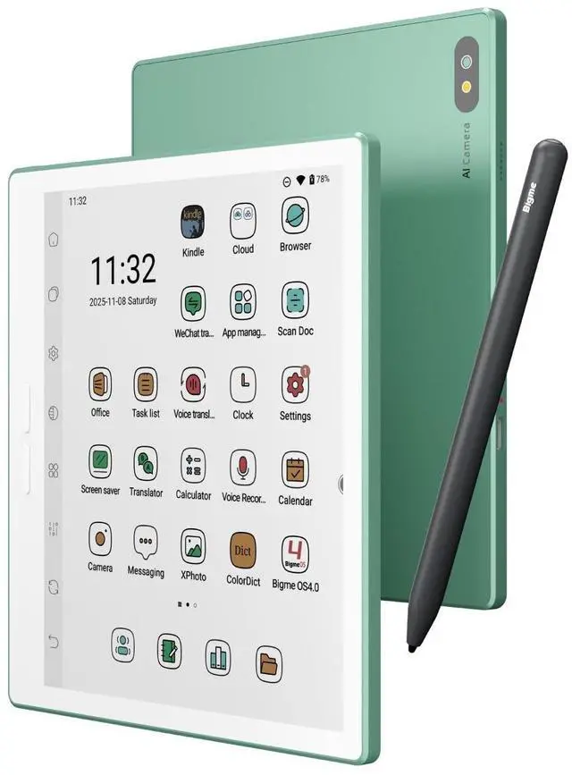 Bigme B7 Pro ebook reader: Powered by the all-new Dimensity 1080 octa-core CPU ( 2.6GH z), paired with upgraded 8+256GB memory (from 8+128GB). Boasts smoother performance and faster response, achieving a real AnTuTu score of 720K. ^^ 4G Global Connectivity & Smart Call Tools: This color epaper phone supports worldwide 4G calling for seamless communication anywhere. Features call recording with real-time transcription and AI-powered smart summarization, boosting work efficiency.