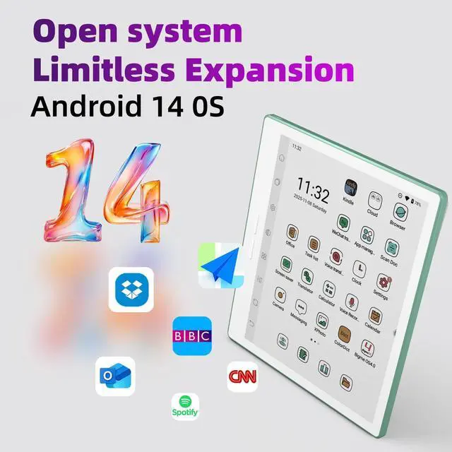 • Android 14 Open System: Runs on the open Android 14 OS, supporting free installation of third-party apps. Customize your device freely for diverse usage needs on Bigme 7 inch color ereader.