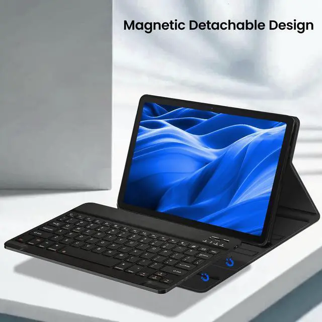 This premium PU leather case transforms your tablet into a productivity powerhouse with its magnetically detachable Bluetooth keyboard (45-50 hours battery life, 10m range). Adjust to three viewing angles with the anti-slip stand, while the rugged polycarbonate shell and soft rubber lining protect against drops. The full-travel ABS keyboard offers a tactile typing experienceno cheap silicone keysand the built-in pen slot keeps your stylus secure (pen not included)