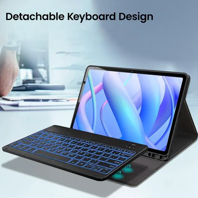 This premium 12.4" keyboard and case transforms your Galaxy Tab S9+/S10+ into a productivity powerhouse, featuring a 7-color backlit mechanical keyboard with adjustable brightness, military-grade shock protection, and multi-angle stand functionality - exclusively designed for S10+/S9+/S9 FE+ models (SM-X810/X816B/X610/X616B/X820/X826B/N series) with auto sleep/wake capability (not compatible with S10 FE+).
