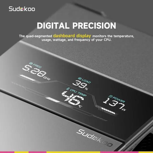 Critical Note: This AM5 air cooler is mechanically incompatible with the MSI MAG B850M Mortar (WIFI) motherboard. ^^ AM5 CPU ANTI-BEND PROTECTIONThe bracket can support the weight of the radiator and prevent the CPU from bending. Please install it on CPU when motherboard is placed horizontally, not vertically. ^^ REAL-TIME DIGITAL DISPLAYEquipped with a digital display, this CPU air cooler for AM5 shows real-time CPU metrics like temperature (C/), load, and frequency. This PC cooler with screen is controlled via Sudokoo Control Center MasterCraft (Win10/11 ONLY). Perfect for gamers and overclockers who demand real-time monitoring in a single tower air cooler. ^^ LOW-NOISE AMD AM5 COOLERSK700V AM5 air cooler is equipped with a 120mm FDB PWM fan. With adjustable speeds 500~2200 RPM10%, and 0 RPM under 5% PWM load, its the ideal balance of cooling and silence. ^^ FULL RAM CLEARANCENo