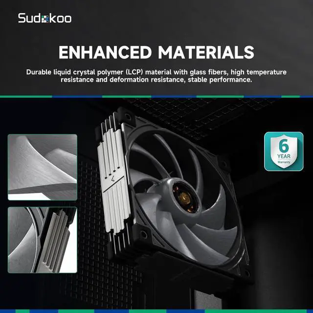 EXTREME COOLING PERFORMANCEWith high-performance 3-phase, 10-pole, 12-slot FOC closed-loop control motor, Sudokoo 30mm Thick MACH120 3IN1 PC cooling fan can reach PWM range of 500-3000 RPM 10% with airflow of 108 CFM and air pressure of 7.31 mmAq. ^^ LCP THERMAL BLADESLiquid Crystal Polymer LCP and 40% glass fiber composites withstand high temperatures and prevent warping at high RPMs, greatly enhancing the structural integrity of the fan blades and frame. ^^ DYNAMIC BALANCE CORRECTIONWith Japan's PORITE CORPORATION Hybrid Hydraulic Bearing, quiet PC fan MACH120 3IN1 features extended durability of a 6 year warranty and quieter operation.
