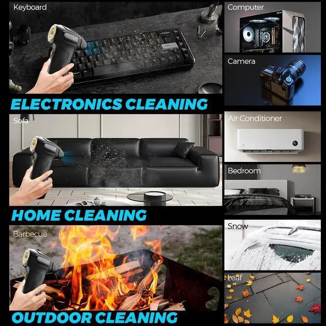Canned Air: Unlike traditional canned air, our turbo fan offers an energy-efficient, rechargeable solution without the risk of liquid or ice formation. It safely cleans electronics and protects against potential liquid damage ^^ Fast Charging & Long
