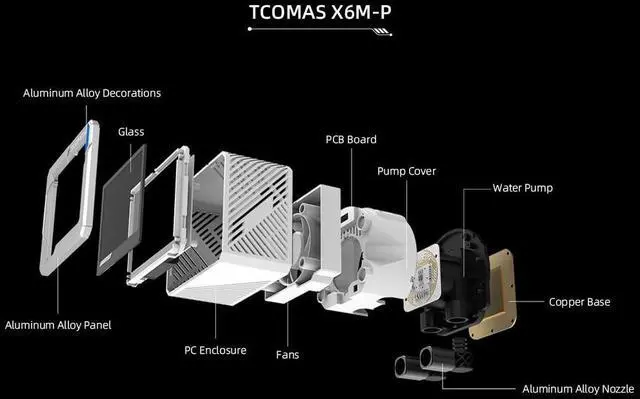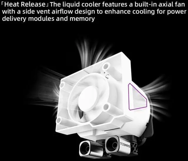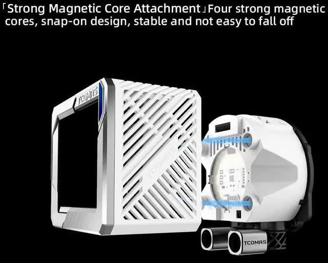 Equipped with a vivid 3.5 -inch IPS display that supports real-time system monitoring and custom animations through TCOMAS software. ^^ Four magnetic cores provide a secure, stable connection between the pump and top cover for effortless installation and cleaning. ^^ Constructed with CNC-machined aluminum housing, brushed finish, and high-gloss beveled edges for a modern industrial look. ^^ Delivers 3200RPM max speed, 115.3CFM airflow, and 7.48 mmHO pressure, offering unmatched cooling power with reduced noise. ^^ Features a 29mm radiator for 15% greater coolant capacity and supports Intel LGA 1851/1700 & AMD AM5/AM4 platforms.