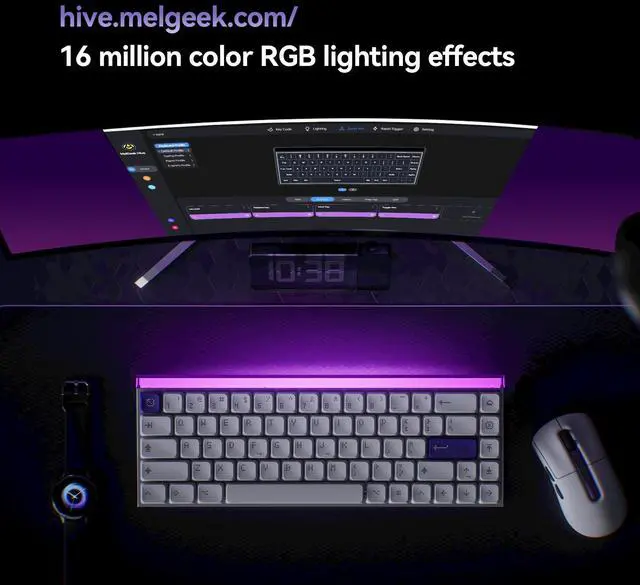 MelGeek MADE68 Air Wired Keyboard, Hall Effect Magnetic Switch Low-Profile Gaming Keyboard, 65% Compact Rapid Trigger, Hot-Swappable, RGB Snap Tap & Adjustable Actuation, Online HIVE Custom (Purple)