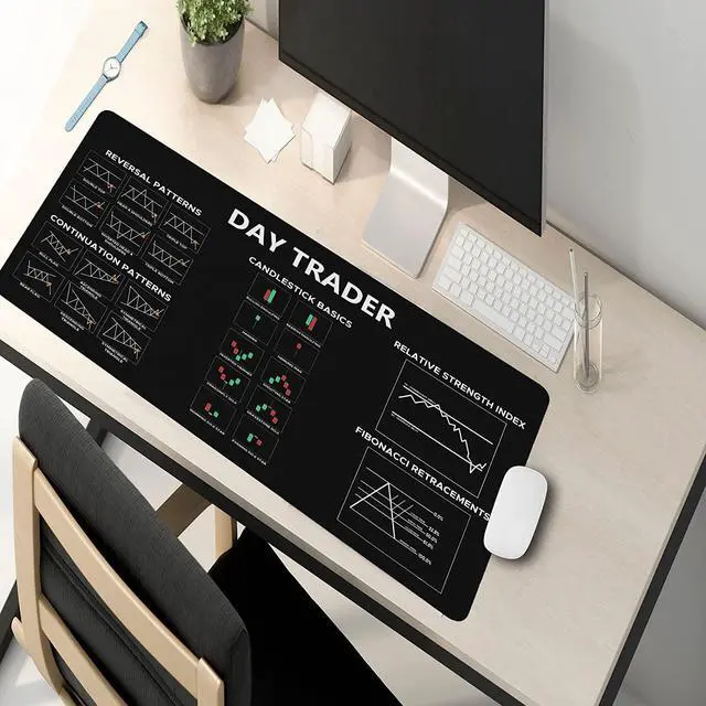 Chart and Candlestick Pattern Mouse Mat Desk pad is large enough to have a mouse, gaming keyboard and other desk items. Size: 31,5inc (80cm) x 11,8inch (30cm)