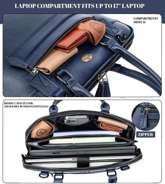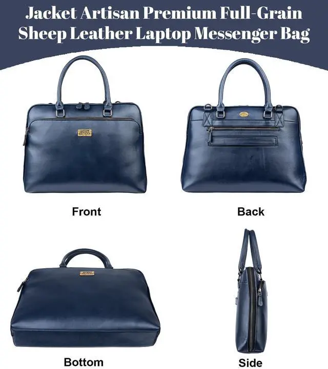 Premium Full-Grain Leather Laptop Messenger Bag - Sleek, Durable, Handcrafted Work Briefcase for 13.3 to 15.6 Inch Laptops (Blue, 15.6 Inches)