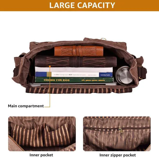 Durable Waxed Canvas: Made of thick, durable waxed canvas fabric, this messenger bag ensures long-term, heavy-duty use. The sturdy construction protects your laptop, books, and other essentials from daily wear and tear. It's a reliable companion for school, work, travel, or daily activities.
