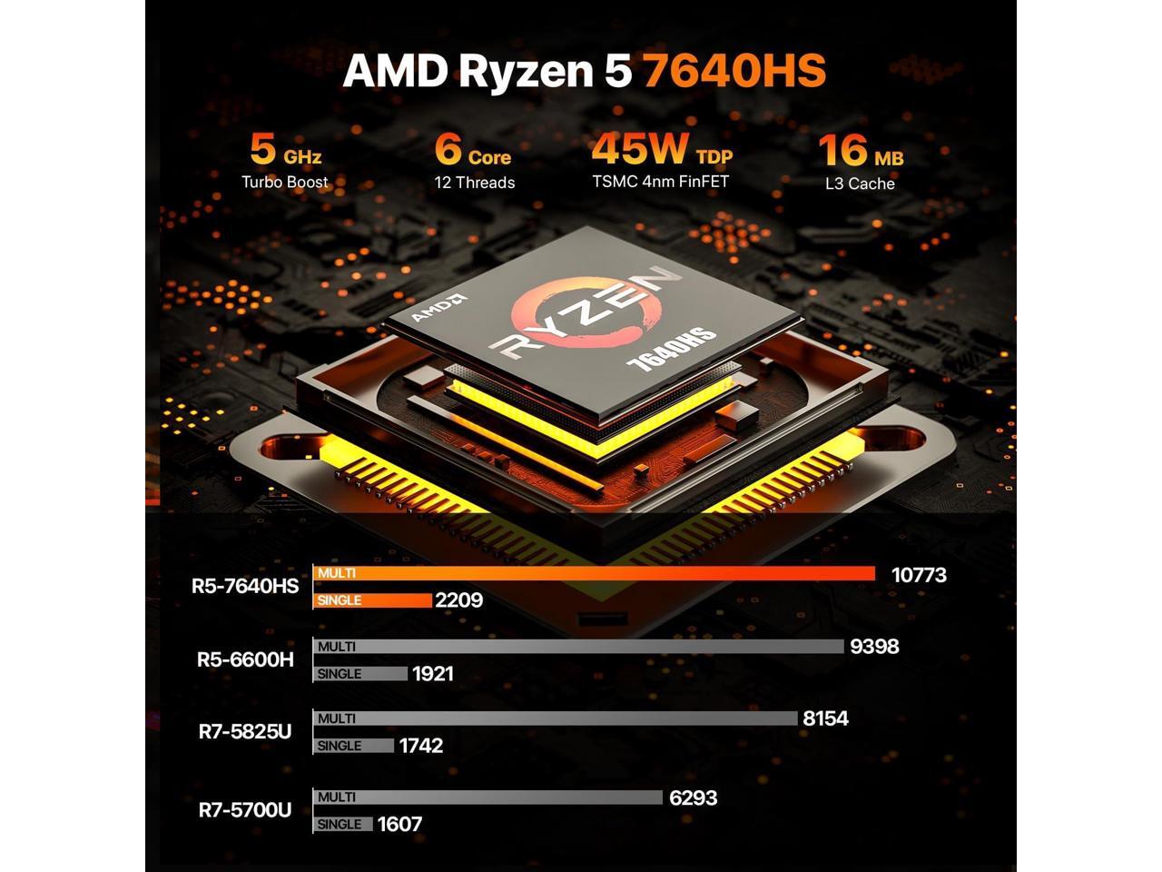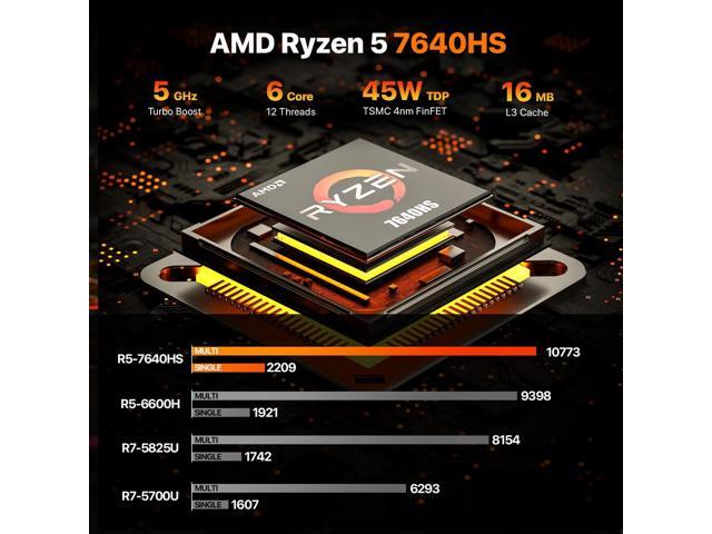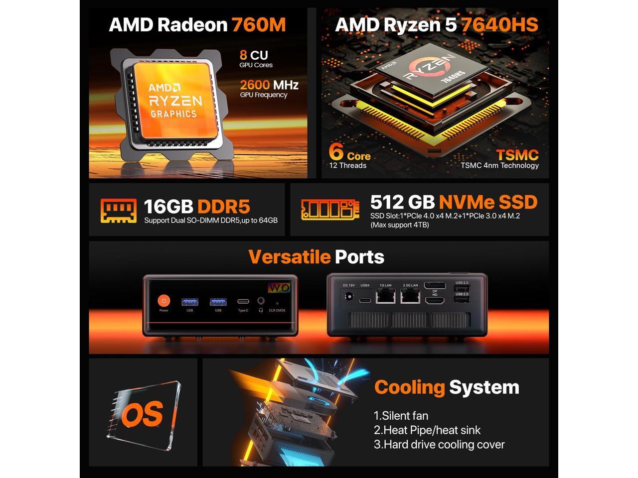 - The Ryzen 5 7640HS CPUThe WO4 Mini PC is a Small Desktop Micro Mini Computer with an Ryzen 5 7640HS (6C/12T up to 5Ghz) processor. The GPU is integrated with a powerful Radeon 760M Graphics Card; This mini computer can handle heavy computing tasks smoothly and better for multitasking.