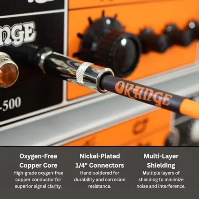 Standard and affordable CRUSH series cables. Instrument cable (shielded instrument cable) 10ft/3m straight plug. External sheathing, plug root sleeve tube with Orange logo