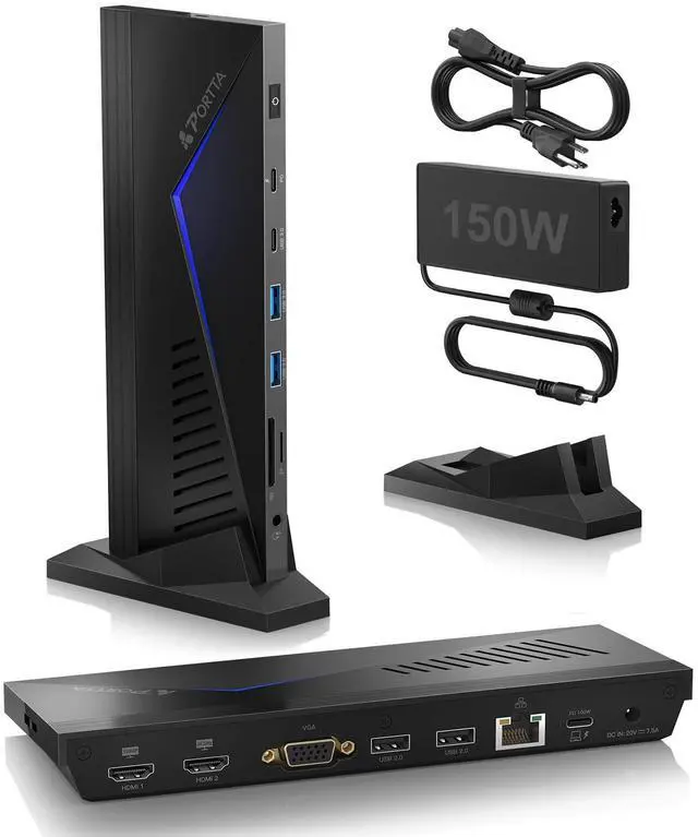 100W PD & 20W PD Fast ChargingEquipped with a 150W, 20V, 7.5A power adapter, allows you to charge your laptop with up to 100W. Additionally, the USB-C 3.0 PD port offers 20W of charging power for connected devices such as smartphones, enhancing the versatility of this USB C dock.