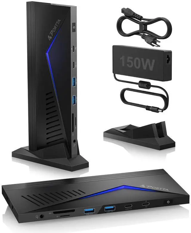 ^^ What You Get14 IN 1 Docking Station x1, Vertical Stand x1, 150W Power Adapter x1, USB-C to USB-C Cable x1, AC Power Cable x1, User Manual x1 with hassle-free 2-year warranty and lifetime technical support. Feel free to reach our friendly customer service if you have any questions.