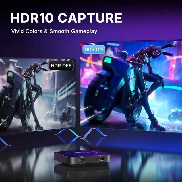 4K 60Hz Ultra Capture & Passthrough Capture stunning gameplay in 4K@60Hz, 2K@144Hz, and 1080p@240Hz. Supports YUY2, NV12, and RGB24 formats for enhanced visual quality. ^^ Advanced VRR HDR Technology Enjoy superior image quality with Variable Refresh Rate (VRR) and High Dynamic Range (HDR) for smoother gameplay. ^^ Smart Display & Control Real-time operation parameters and a smart switch for easy display and ring light controlpress and hold for 2-3 seconds. ^^ Broad Compatibility Seamless plug-and-play with Windows, macOS, and Linuxno driver installation required for easy integration with popular streaming software.
