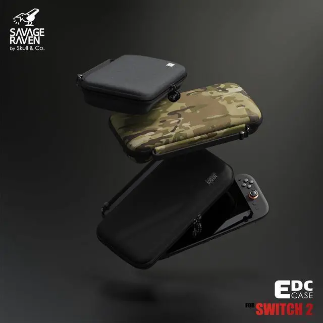 SAVAGE RAVEN by Skull & Co. Every Day Slim Carrying Case for Nintendo Switch 2: Portable Hard Shell Protective Travel Case,Console Protection- Multi-Camo