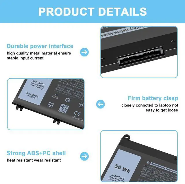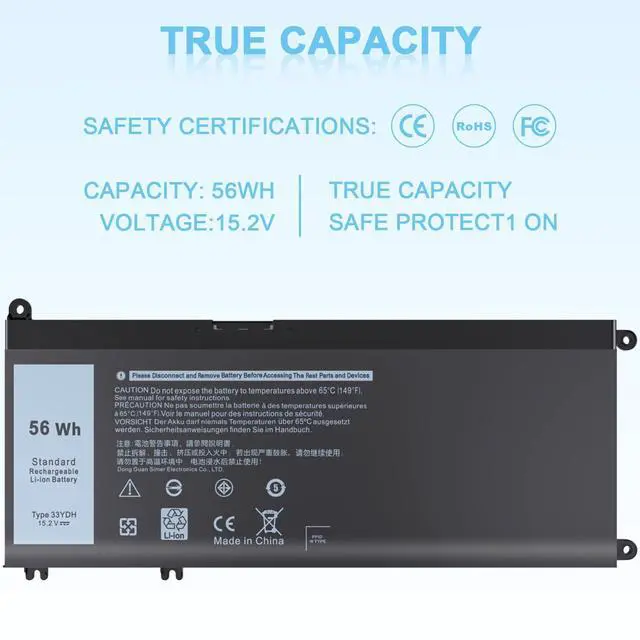 [(GUARANTEE)] 100% New from Manufacturer. Up to 500 recharge cycles over the life of the battery. Packages includes: 1 x 33YDH Laptop Battery Replacement, 2 x Free Screwdrivers,1 x Instruction for 33YDH battery