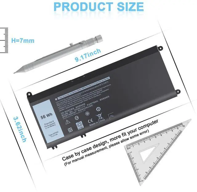 [(33YDH Battery for Dell)] Replacement for Dell Inspiron 17 7000 7577 7773 7778 7786 7779 2in1 Series; for Dell G3 15 3579 Series; for Dell G3 17 3779 Series; for Dell G5 15 5587 Series; for Dell G7 15 7588 Series; for Dell Latitude 15 3590 3580 Series; for Dell Latitude 14 3490 Series; for Dell Vostro 15 7580 7570 Series; for Dell Latitude 13 3000 3380 Series(Details listed below)