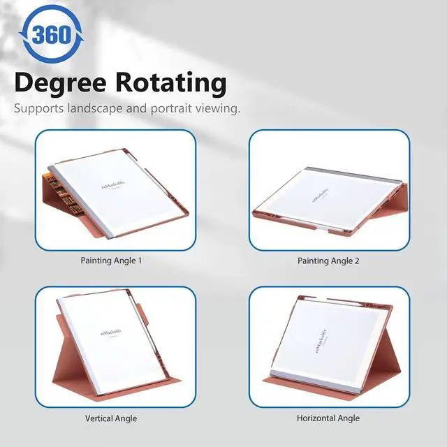 Unique Rotating Stand Design: Remarkable 2 Cover equipped with a unique rotating stand that can be rotated to 360 degree angle to meet your multiple angle needs, suitable for writing, web browsing, reading and many other occasions.
