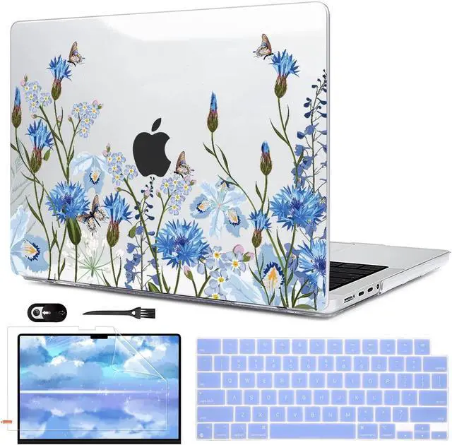 Package including: 1 plastic hard case & 1 HD screen protector & 1 plastic webcam cover & 1 keyboard cleaning brush & 1 keyboard cover.
