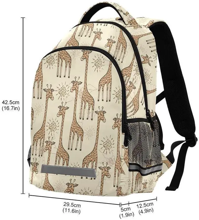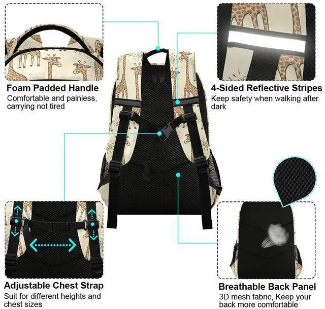 MNSRUU School Backpack with Chest Strap, Animal Cute Giraffe Laptop Backpack, Travel Hiking Backpack for Boys Girls, Rucksack, Knapsack One Size