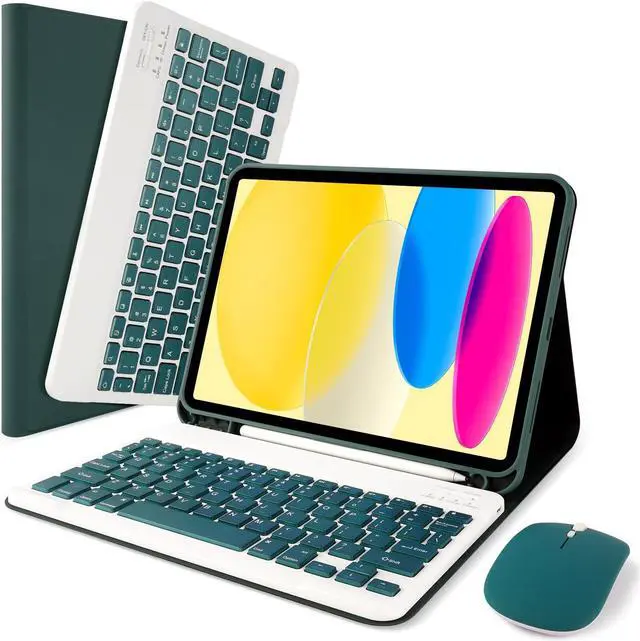 SOPPY Bluetooth Keyboard Case with Mouse for iPad 11th Gen. (A16) 11-inch 2025, 10th Generation 10.9 inch 2022, Detachable Protective Cover, with Built-in Pen Holder, USB-C Rechargeable, Dark Green