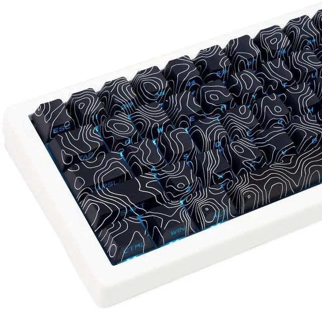 Backlit keycaps: The black side print keycaps provide a simple, clean look, and the keyboard light shine through the lettering to give your keyboard a unique look, and the topographic line design adds uniqueness and artistry to your keyboard