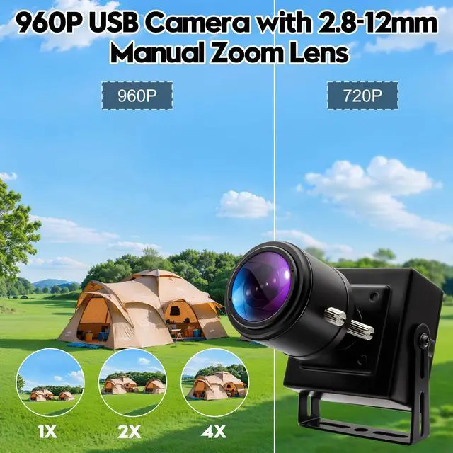 Magnolia 1.3MP USB Webcam 0.01Lux Low Light HD Camera 2.8-12mm 4X Manual Optical Lens 960P Industrial Security Camera UVC Plug&Play for Windows, Linux, Mac OS