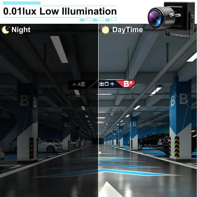 0.01L ux Low Light Camera: Equipped with an ultra-low light capability ( 0.01 lux), this camera delivers sharp images even in low light environments. Very suitable for all-weather monitoring, night monitoring.