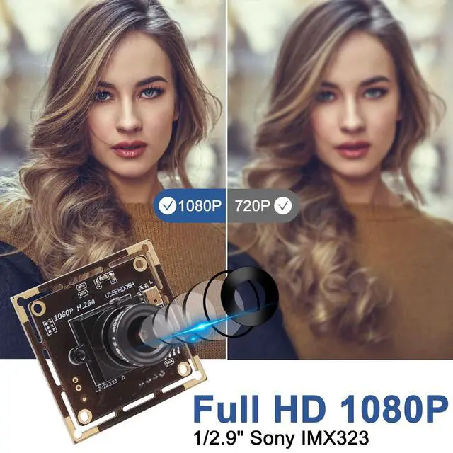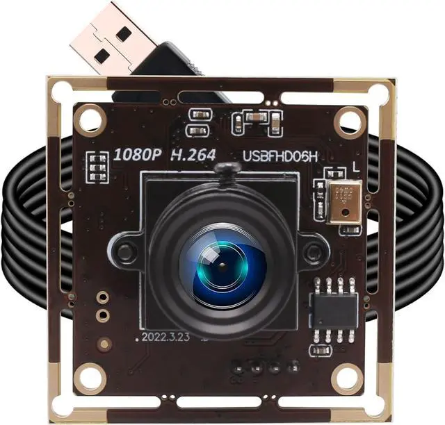 Supports multiple resolutions: 320x240, 640x480, 1280x720, and more, ensuring flexibility for different applications. ^^ IMX323 Sensor & Ultra Low Light 0.01 luxEquipped with a 1/ 2.9" IMX323 CMOS sensor, this tiny webcam provides high sensitivity and vivid colors. With minimal illumination of 0.01 lux, it performs exceptionally well in dark or low-light environments, making it ideal for security cameras and night vision. ^^ H. 264 Compression & Built-in Digital MicrophoneFeatures H. 264/MJPEG/YUY2 encoding for smooth, high-quality video with low bandwidth usage. The built-in digital microphone captures clear audio, perfect for video calls, streaming, and surveillance. ^^ Plug & Play Wide CompatibilityNo drivers needed! Works instantly with Windows, Linux, Mac, Android (OTG supported). Ideal for Raspberry Pi projects, Lightburn, OBS, gaming, and video conferencing (Skype/Zoom). Includes a 1meter( 3.3 ft) USB 2.0 cable for easy setup. ^^ Compact & Versatile Perfect for Multiple UsesUltra-compact 38x38mm (can cut to 32x32mm) board with a 3.6 mm lens (84 HFOV). Great for embedded systems, robotics, security cameras, live streaming, and industrial machine vision.