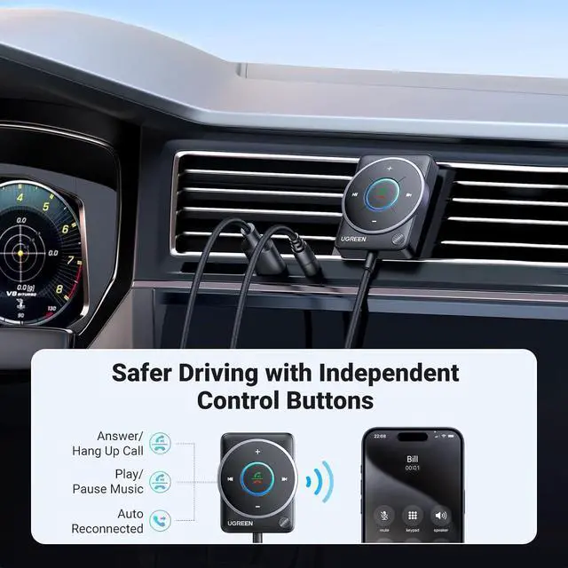 Awesome Cable: Built With a nylon braided cable, UGREEN aux Bluetooth adapter for car is extremely durable and sturdy; Also constructed with multiple layers of shielding to minimize interference, and is corrosion-resistant for optimal signal transmission, effectively prolonging the cable service life.