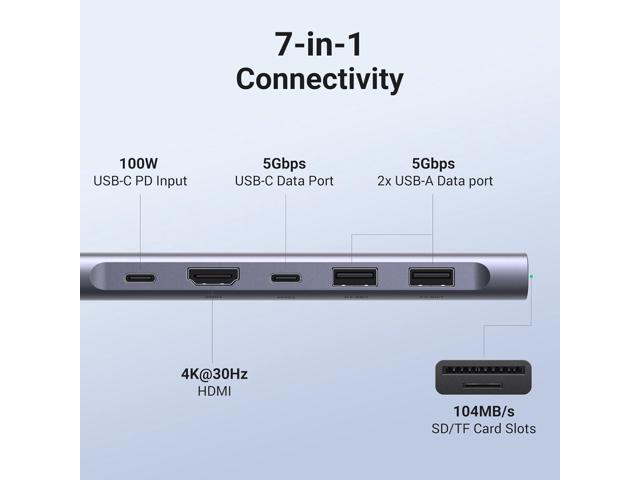 UGREEN Revodok 1071 USB C Hub for Laptop 7 in 1 Dock 4K HDMI, 100W PD Charging, USB-C & 2 USB-A 5Gbps Data Ports, SD/TF Card Reader for MacBook Pro/Air, iPad Pro, XPS, Thinkpad