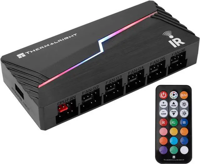 [Beautiful appearance] Small size, with a linear ARGB on the top surface, the overall black, can realize PWM fan synchronization and ARGB light synchronization. Included light remote control for easy control of light color.