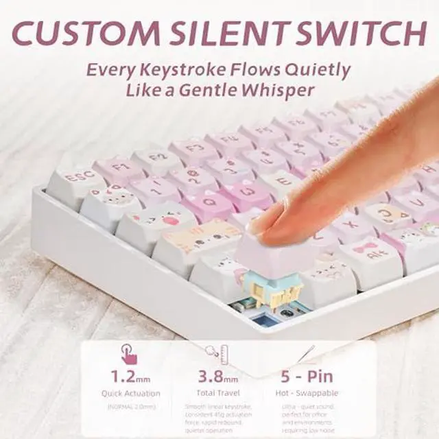 5 Side Dye Sublimation Keycaps with Clear LegendsCrafted from high-purity PBT with Dye Sublimation technology, the keycaps resist shine and wear while featuring a Meow Meow Squad theme that glows with RGB. Side-printed, molded legends ensure long-term clarity and smooth light diffusion.