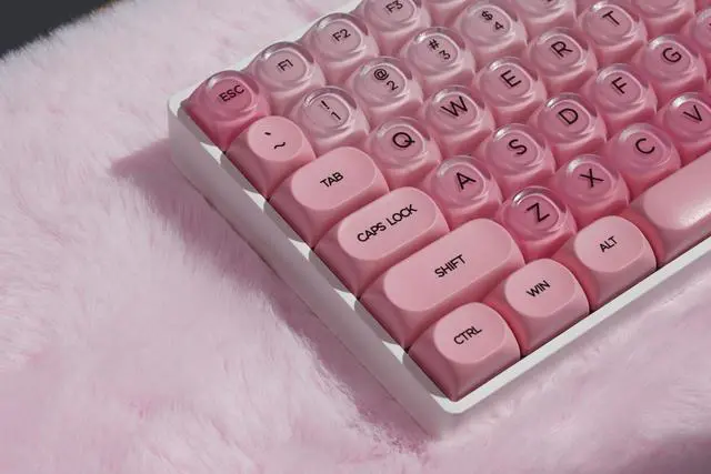 Jelly MOA Profile KeycapsThe edge line of MOA keycaps is more rounded and curved sense is stronger, its unique design make it has higher stability and feel. Jelly keycaps features a distinctive jelly - like transparent design. he fresh light pink color offers an outstanding aesthetic, adding a dreamy atmosphere to your keyboard and making it stand out. ^^ 98% Layout for Full Function with Compact SizeThis 98% layout retains the full number pad, F-row, arrows, and navigation keysgiving you complete functionality in a space-saving footprint. Ideal for gamers, coders, and professionals who want full performance without a bulky keyboard.