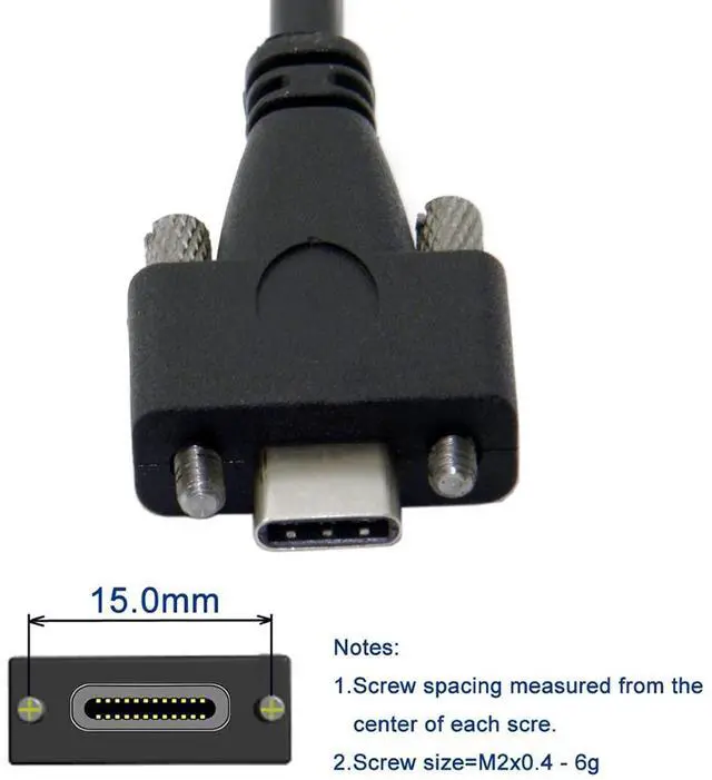 USB 3.1 Type-C Dual Screw Locking to Locking USB-C 10Gbps Data Cable Panel Mount Type.