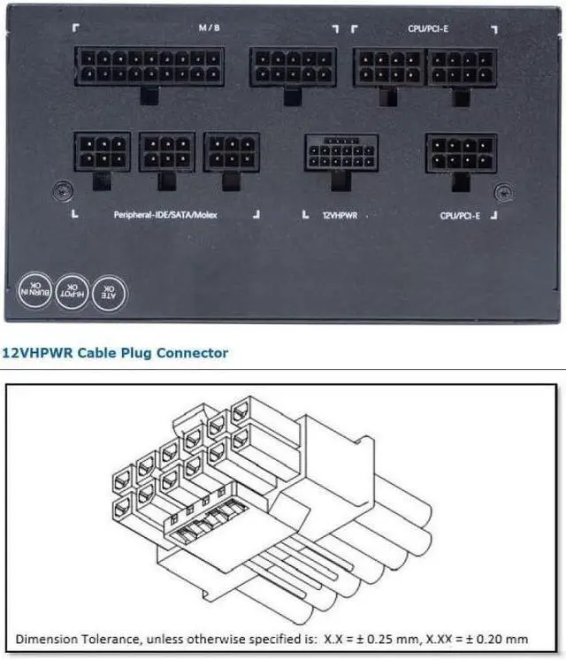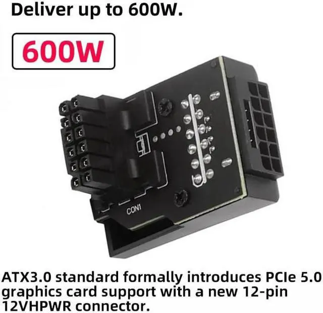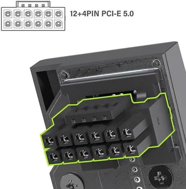 PCI-SIG 12VHPWR H+, including 12 pin power supply terminal, and 4 pin signal terminal on the side, Capable of delivering up to 600W of power.