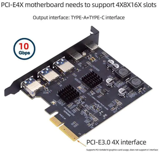 chenyang 5 Port PCI-E 4X to 2 USB C/3 USB 3.0 Panel Socket USB 3.2 Gen2 PCI Express Expansion Card Adapter with ASM3142 VL822 Dual Chipset