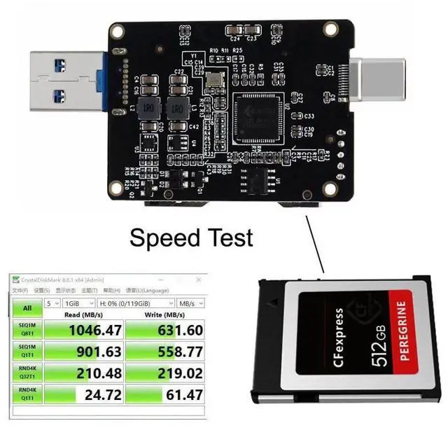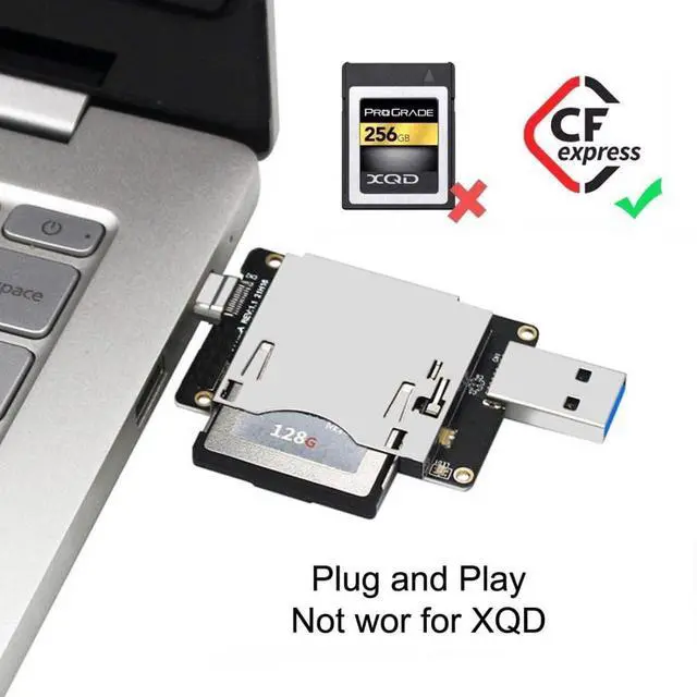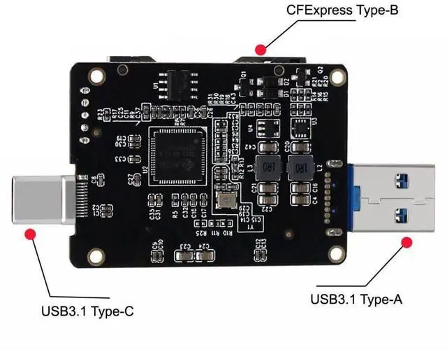 1) Only work for CF-Express Type-B Memory card, Not work for XQD card. 2) TYPE-A+TYPE-C dual interface design, universal for mobile phone/computer/TYPE-C device, universal for computer/TYPE-A device, dual connector card reading is more convenient. 3) The USB 3.1 Gen 2 CFexpress card reader is a high-speed card reader with ultra-fast data transfer speeds up to 10Gbps. 4) High-quality gold-plated connectors are used, high-frequency and low-resistance high-quality materials are used for the PCB, and the PCB is precision-crafted. 5) Files can be viewed at any time, supporting mobile phones with OGT function to connect to mobile phones, file reading/copying/storage.