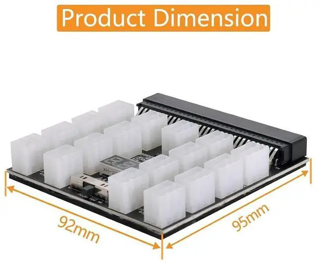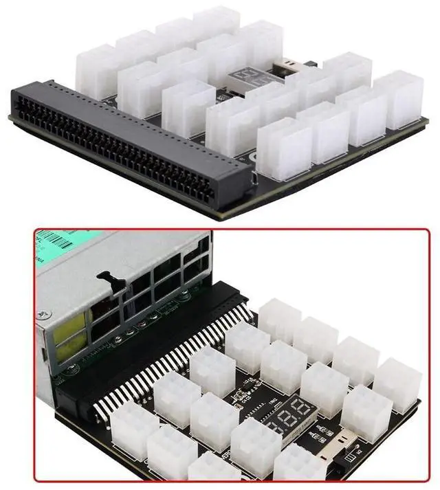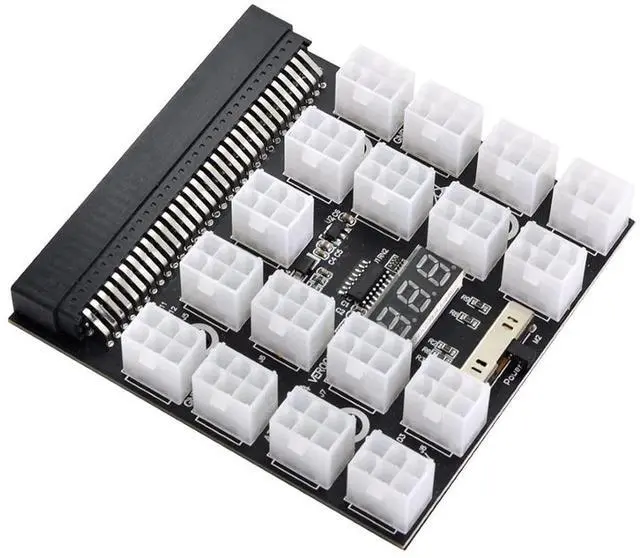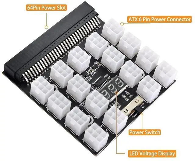 12V ATX 17Ports 6Pin Power Supply Breakout Board Adapter Converter for Ethereum ETH BTC Mining MinerMaximum support 1200W power supply. Ounce Copper PCB, solid capacitor filter, 17 of 2 x 3 Pin ATX output. Suitable for a variety of server power supply bare board accessories, you can also choose adding 17pcs output wires. The LED voltage display can display the voltage of the main PSU in real time.