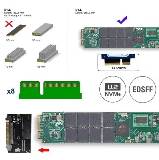 U. 2 SFF-8639 Host Adapter to NVMe Ruler 1U GEN-Z EDSFF 2C 8X Short SSD PM983 E1. L Carrier AdapterThis converter enables the connection of a GEN-Z 2C Connector 8X SSD in E1. L. This card expands the PC by one EDSFF E1. L 2C Connector 8X interface. It can be connected e. g. to the DC PM983 Series EDSFF NVMe SSD. The converter can be installed into your system internally through the U. 2 interface. Thus an EDSFF E1. L SSD becomes an U. 2 SSD, which can be used in IoT, data center and server area.