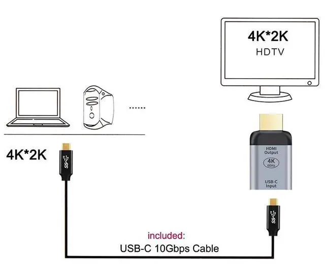 Note: The input device needs to be used with a CC data cable that supports USB 3.1 Gen2 full function. ^^ You need to use the 10Gbps usb-c to usb-c cable. (Other Cable not work) ^^ You can connect the 10Gbps USB-C to USB-C Cable to the adapter, Then connect it to the HDMI displays. ^^ USB-C to HDMI Adapter lets you connect your laptop with USB-C port to any HDMI display.