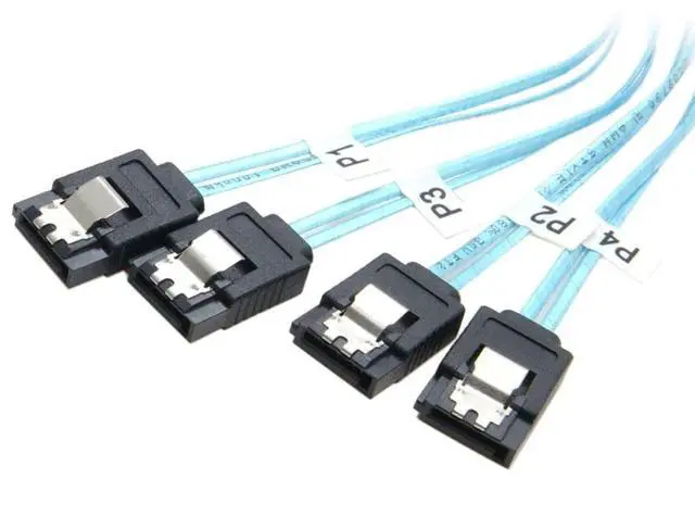 Slim Line SAS 4.0 SFF-8654 4i 38pin Host to 4 SATA 7pin Target Hard Disk Fanout Raid Cable 50cmThis SAS cable can be used to connect internal devices, e. g. a hard disk with SATA 7pin connector to a controller with Slim SAS SFF-8654 4i connector. Ultraport SlimSAS 4i 38Pos Cable AssemblySlim SAS 4i Straight to