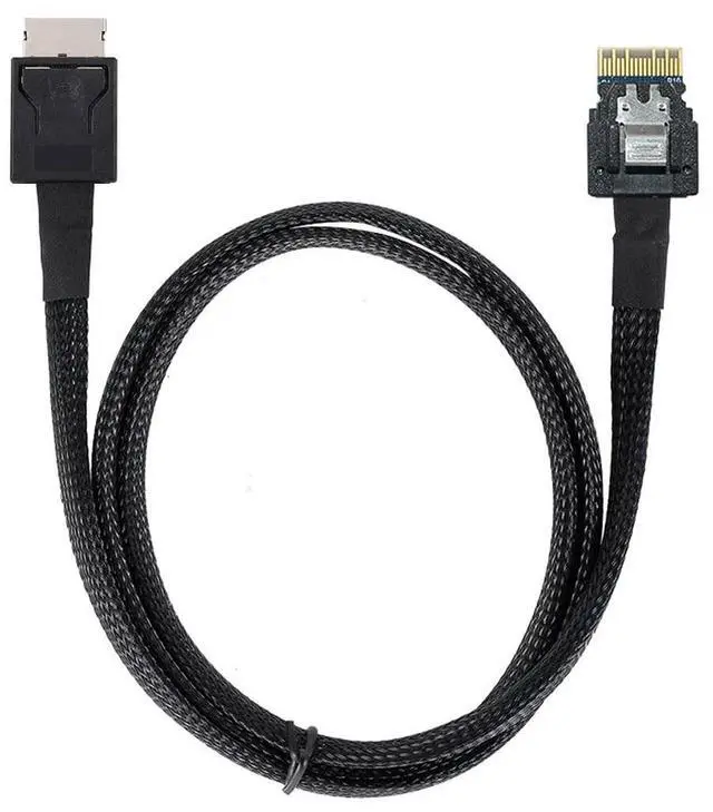 This OCuLink cable can be used to connect internal devices, e. g. a backplane with SFF-8654 connector to a controller with OCuLink SFF-8611 connector. ^^ OCuLink SFF-8611 male to SFF-8654 male, Lock to