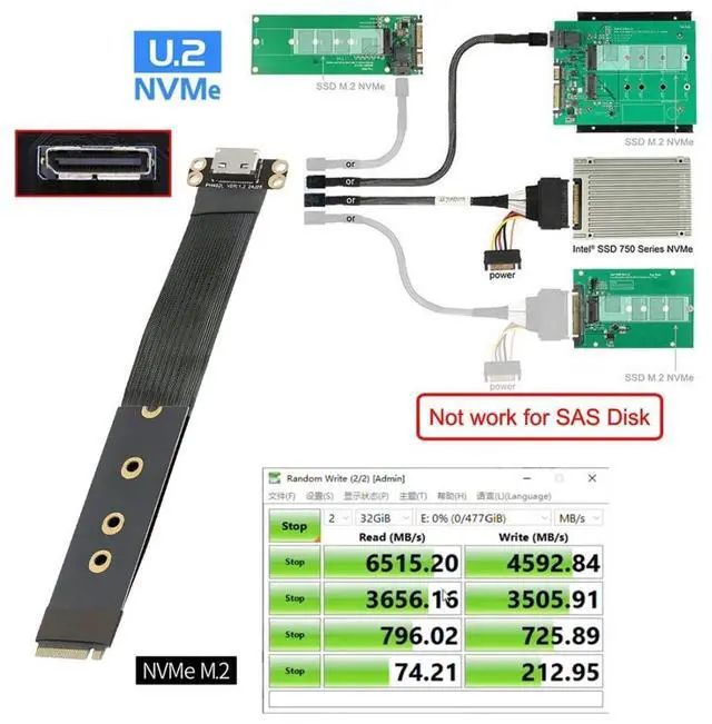 This 15cm cable expands the 2280 M-Key system by one SFF-8612 oculink female interface. ^^ It can be connected e. g. one SSD or eGPU Graphics Card by using an optional cable. Suitable for small hosts, desktops, laptops, etc. to convert M. 2 sockets to Oculink sockets, with fixing holes for fixing. ^^ The cable transmits PCI Express 4.0 signals using the NVMe protocol; Support PCIE 4.0 data transmission, Data transfer rate up to 64Gbps, Supports NVM Express (NVMe) 1.2. support connecting GPU graphics card, SSD, expansion card, etc.