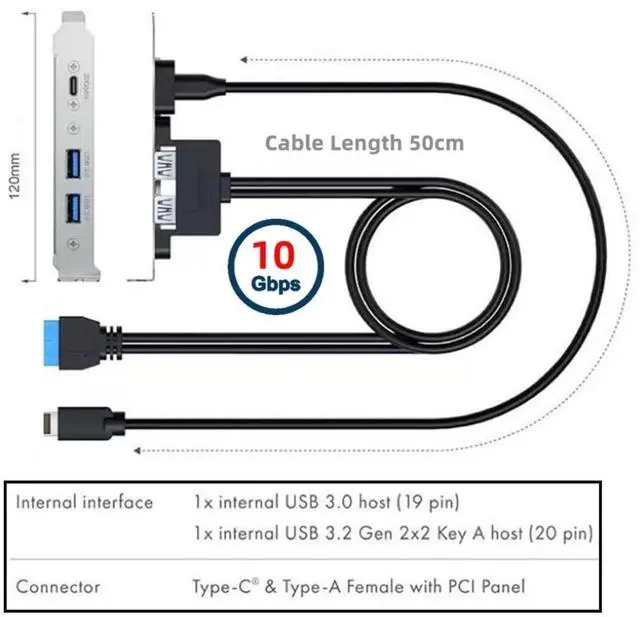 1) The type-C doesn't support any audio, video and docking output, Not work for any PD power, DP alt mode. 2) Compliant with USB Base Specification 3.0, Output USB 3.0 interface and Type-C interface of PC back panel. 3) Compliant with USB 3.0 Super-Speed (5Gbps), USB 2.0 Hi-Speed (480Mbps), USB 1.1 Low-Speed ( 1.5M bps). 4) With this cable, you can directly connector motherboard 20pin socket, converted to dual usb 3.0 & Type-C socket. 5) The Type-C/ Type-A port supports 5Gbps USB Data from SSD/HDD.