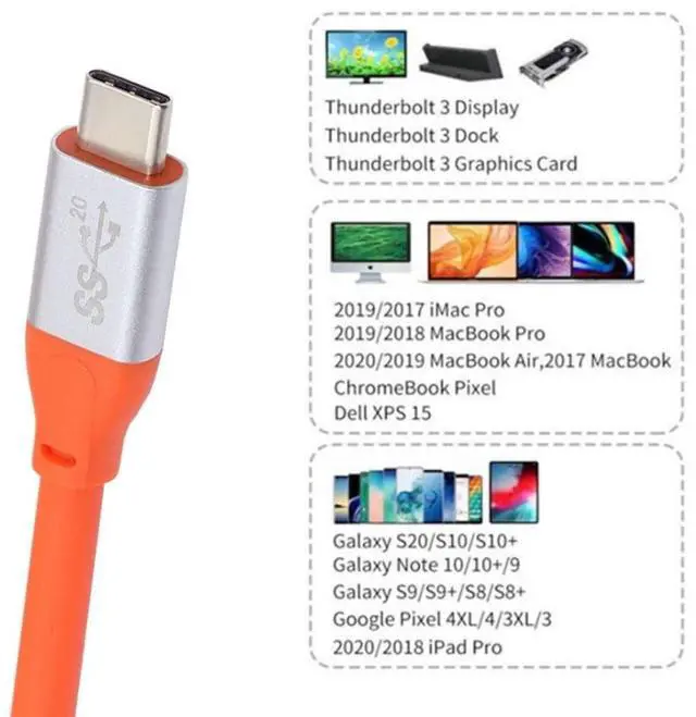 Wide Compatibility: This USB4 Type-C Cable is widely compatible with Most of USB-C Devices (Mainly Laptops), Such as Mac Pro 2020, 2019, 2018, XPS, Chrome Book and other DP Alternated Mode Supported Devices, backward compatible with Thunderbolt3, You can also connect with Hard Drivers and Docking Stations for Data.